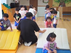 By seioukai2025年9月30日未分類 ホールでの運動あそびの様子です。今日は『まんまる山』で遊びました。 山登りやジャンプをして、たくさん体を動かしてあそびました。 これからもたくさん遊んでいこうね。