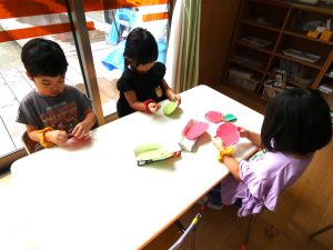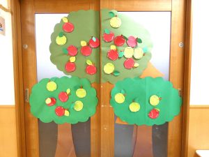 By seioukai2025年10月1日未分類 秋の果物の『りんご』を作りました。 指先を使って穴に毛糸を通していきます。 お部屋の木にできた『りんご』を貼っていきました。 おいしそうなりんごができたね♪