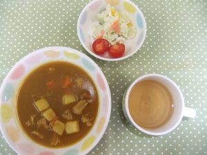 『チキンカレー』でした。カレーは子どもたちに大人気なメニューです。