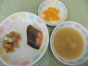 『鮭の塩焼き』は、塩気がご飯と合い、パクパクと食べ進めていました。