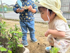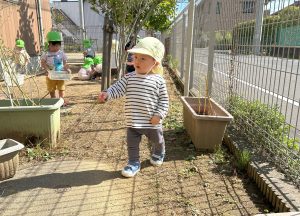 By seioukai2025年10月14日未分類 天気の良い日には、中庭やテラスで遊んでいます。 中庭では靴を履いて探索を楽しんだり、虫やお花を見つけて興味津々です! 過ごしやすい日が増えているので、中庭、テラス遊びや散歩など秋の自然に触れながら楽しんでいきます!