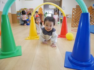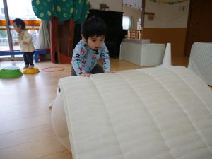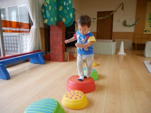 マットの山、バランスストーンなど好きな場所を見つけては何度も繰り返し遊んでいました。