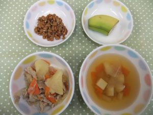By seioukai2025年10月14日未分類 今日の給食です。 『おかか納豆』には、白ゴマも入っていて栄養満点です。子どもたちもパクパクと食べていました。 おやつの『さつまいもドーナツ』は、ほんのりとした甘さとモチモチとした食感でおいしかったです。