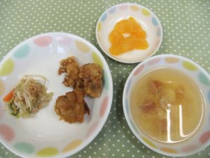 『鶏のから揚げ』が人気でした。衣がかりかりとしていたので、よく噛んで食べていました。