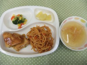 By seioukai2025年10月22日未分類 今日の給食です。 『ミートソーススパゲティ』は子どもたちが大好きで、口の周りをオレンジ色にしながらおいしくいただきました。 ケーキもカラフルな色に「おいしそう!」と喜んで食べていました。