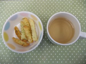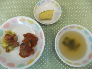 By seioukai2025年10月24日未分類 今日の給食です。 『ジャーマンスイートポテト』は、季節の野菜「サツマイモ」とウインナーが入ってました。 甘じょっぱい味付けで、おいしくいただきました。