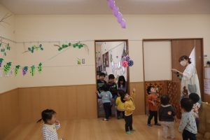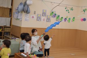 お部屋の中で『風船あそび』を楽しみました。