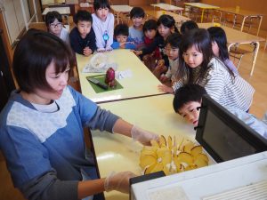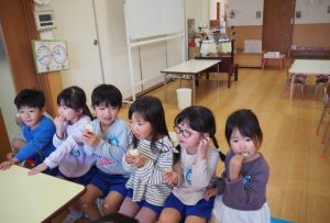 「あまーい」「おいしいね」と大喜びで食べていました。