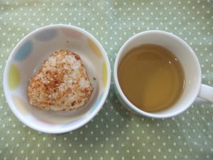午後のおやつは、「せんべい」の予定でしたが、『おにぎり』に変更になりました。