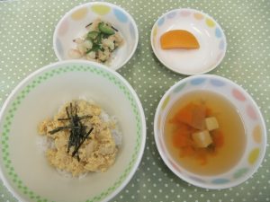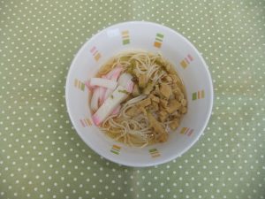 今日は7日『うーめんの日』です。午後のおやつは『きつねうーめん』でした。