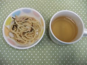 『ひじき炒り』に入っていた大豆を、「まめ!」と言いながら小さいお友だちはつまんで食べていました。