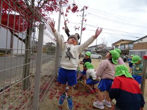 もみじの葉っぱを集めてお空へ!葉っぱのシャワー!