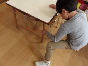 By seioukai2025年12月8日未分類 『きれいなお部屋は気持ちがいいね』とみんなで整理整頓をしています。 自分の道具箱はもちろんですが、テーブルが曲がったりしている事に気づいて直してくれる姿が見られました。