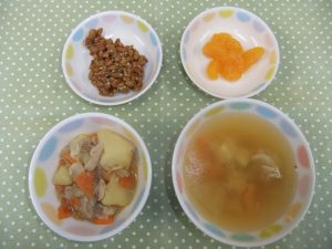 『おかか納豆』が人気でした。ねばねばしますが、箸やフォークを上手に使って食べていました。