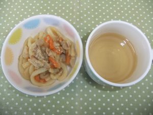 おやつの『味噌焼うどん』は始めてのメニューでした。味噌味が新鮮でおいしかったです。