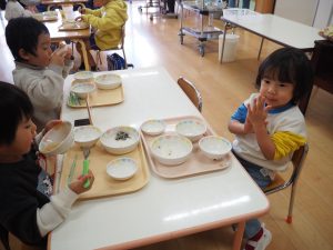 今日は果物のおかわりもあり、もらうと喜んで食べていました。