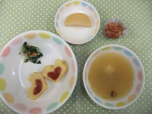 『ツナオムレツ』は、ハート型になっていました。『かわいいね』と子どもたちも喜んでいました。