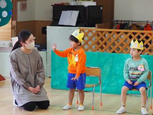 みんなの前で少し恥ずかしくなるお友だちもいましたが、何歳になったかしっかりと答えることができていました。