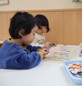 ブロックあそびをお友だちと一緒にしていました。