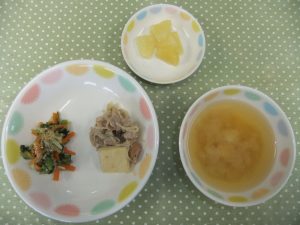 『小松菜の胡麻和え』も、甘ーいゴマが香ばしく、子どもたちも好きな味付けでした。