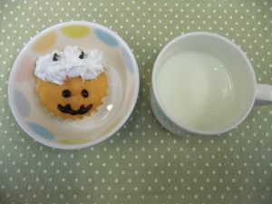おやつの『おにさんマドレーヌ』を見て「かわいい~」と喜んでいました。