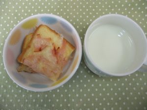 おやつの『クロックムッシュ』は、食パンの上にハムとチーズがのったお食事パンです。