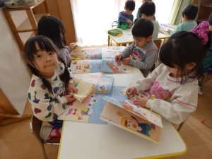 毎月シールのページは人気です。「今度はどこに貼ろうかな?」と好きなところにシールを貼り、