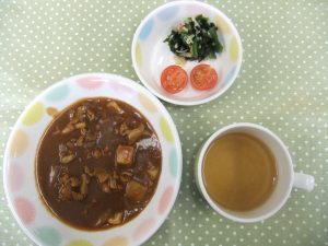『きのこハヤシライス」は、みんな大好きメニューでした。パクパクと食べ、おかわりをする子が多く、