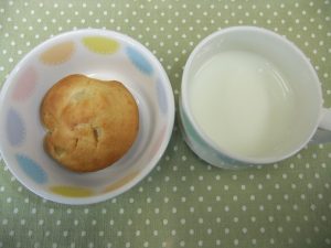 おやつの『リンゴマフィン』は、中にしゃきしゃきのリンゴが入ってました。