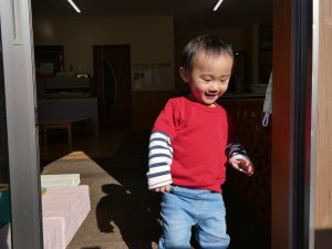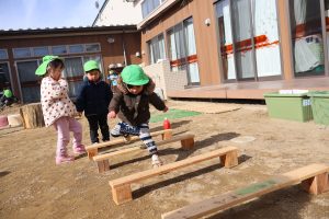 足マークを見て「じゅんばん、じゅんばん!」と言ってお友だちの後に並んでいました。