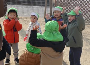 「むっくりくまさん♪むっくりくまさん♪」とみんなでおにごっこをしました。