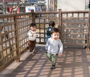 今日は飛び石の上をバランスを取りながら歩いていました。
