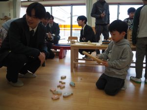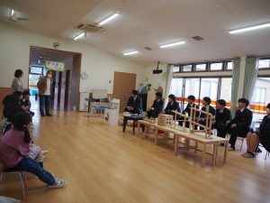 白石工業高校のお兄さんたちが、あそびの森のみんなのために手作りのおもちゃを作ってくれました。