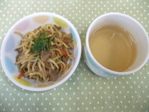 今日の給食では、『チーズ納豆』『オレンジ』『焼きそば』がリクエストメニューでした。