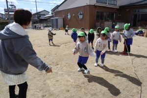 長縄跳びが跳べるようになって楽しくなり、人気なあそびになっています。