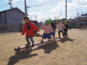 園庭でジャンプ遊びをしました。