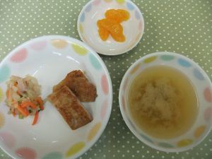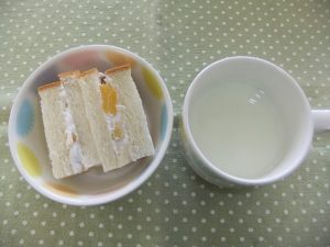 By seioukai2026年3月10日未分類 今日の給食です。 『とんてき』は、柔らかいお肉に味がしっかりと染みていて、ご飯が進みました。 おやつは、リクエストメニューの『フルーツサンド』でした。 「ケーキみたいだね」と言って、喜んで食べていました。