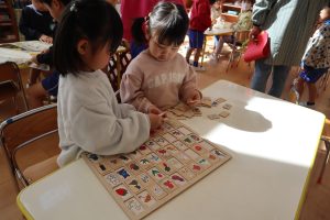 2人でパズルを完成させることができると嬉しそうにしていました。