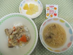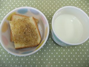 今日は『かきたま汁』とおやつの『セサミトースト』がリクエストメニューでした。