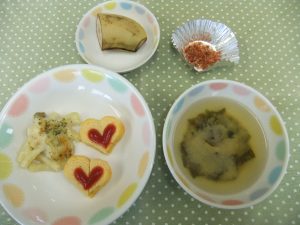 By seioukai2026年3月13日未分類 今日の給食です。 今日のリクエストメニューは、『厚焼きたまご』と『マカロニグラタン』でした。 たまご焼きは、ハート型になっていて見た目にも楽しく、みんな喜んで食べていました。 おかわりも沢山して食べました。