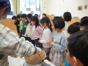 おひさまルームでは、カレーを作る様子を興味深く見ていました。