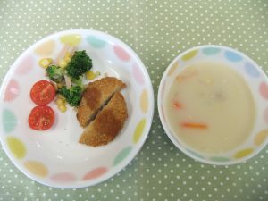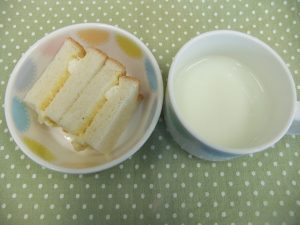 By seioukai2026年3月17日未分類 今日の給食です。 リクエストメニューは『ブロッコリーサラダ』と『ホワイトシチュー』 おやつの『たまごサンド』でした。みんな喜んで食べておかわりも進みました。